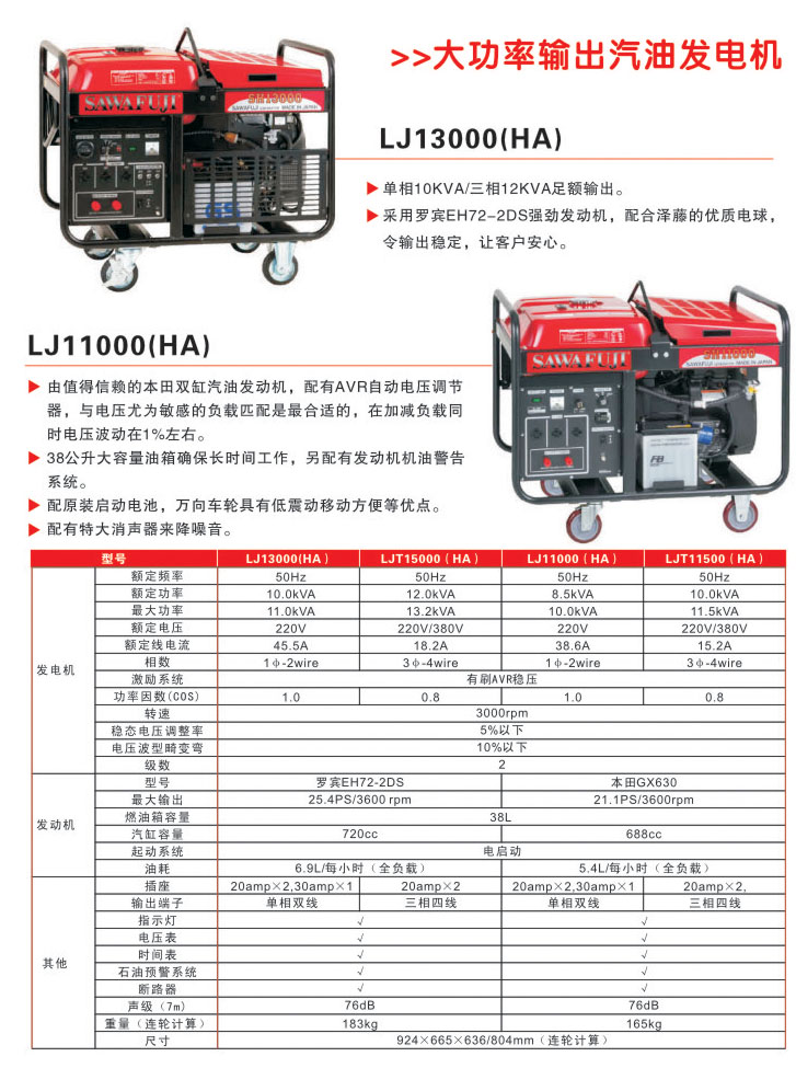 LJ13000(HA)大功率汽油发电机